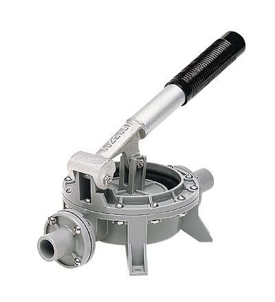 On the up-stroke, the diaphragm sucks the wastewater in while at the same time sucking a rubber flap, mounted at a 45 deg. angle, down against its seat on the discharge side. The down-stroke then pushes the wastewater out while at the same time closing a rubber flap on the intake side. If all your'e pumping is water, everything works fine. But it's not all water, and it doesn't take much to keep the flaps from making a perfect seal. The work-around for this is to fill the suction hose with water before you connect it to your boat. There is a check valve on the boat end of the hose, and a ball valve. Take the boat end of the hose around to the porta-potty wash-out sink and use the wash down hose to fill the suction hose, or use a bucket (which is a lot faster). Try to hold the open end of the suction hose at about the same level as the pump (so you'll know when it's full) while filling, and close the ball valve when it's full. Then connect to your boat and open the ball valve. The check valve should keep the water from running back into your boat (in a perfect world), but if it doesn't, be ready to start pumping the handle right away!